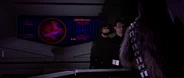 In the first scene where the rebels break into the Death Star's shield generator bunker on Endor, Aurebesh appears on the viewscreen of the control room.