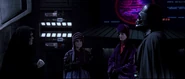 When Darth Vader's shuttle is about to land in the movie's opening scene, Aurebesh text appears on the monitors of the Death Star control center. The text is merely consisting of lines of character repeats.[1]